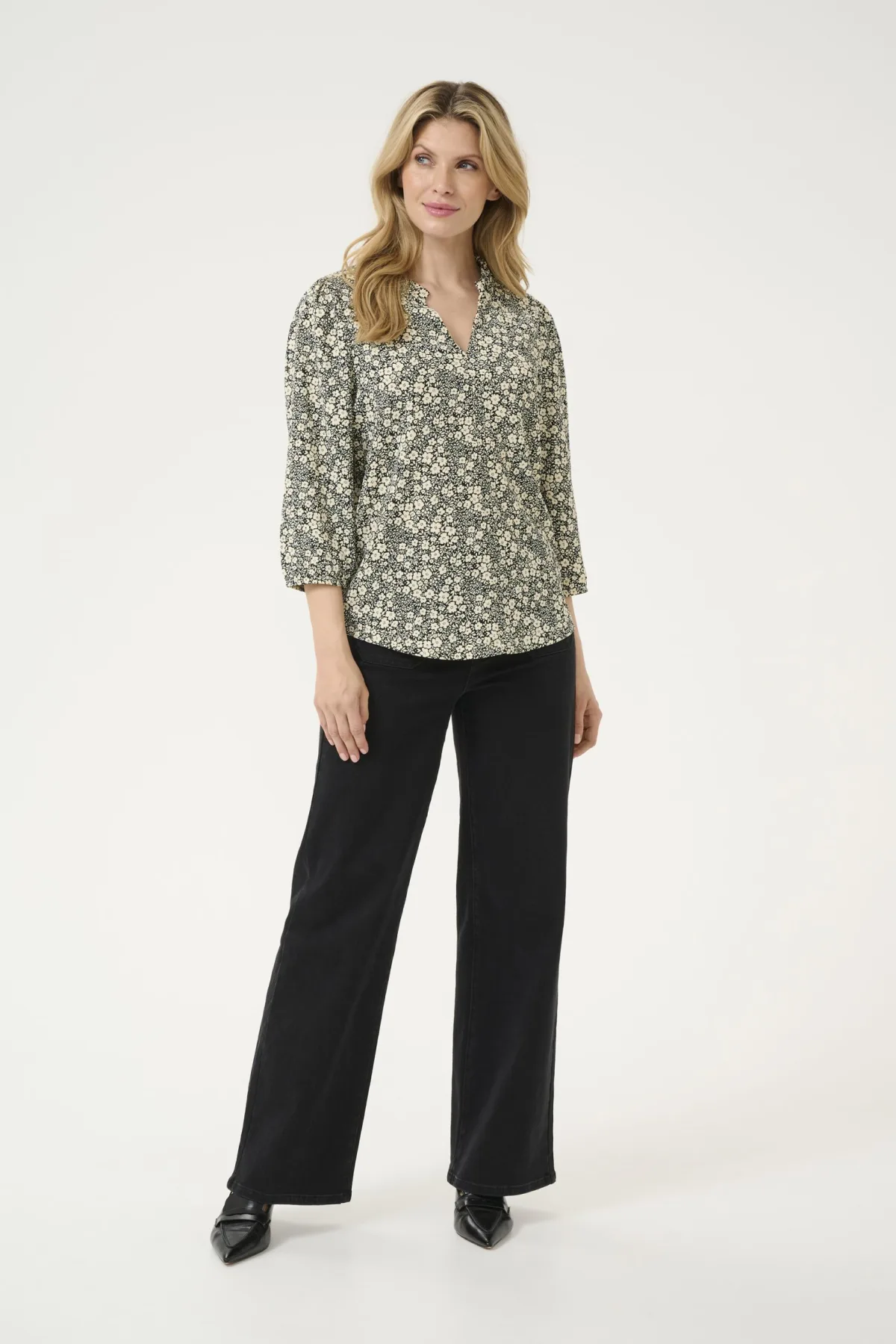 Blouse met lange mouwen Regular fit BlackWhite Flower Print floral