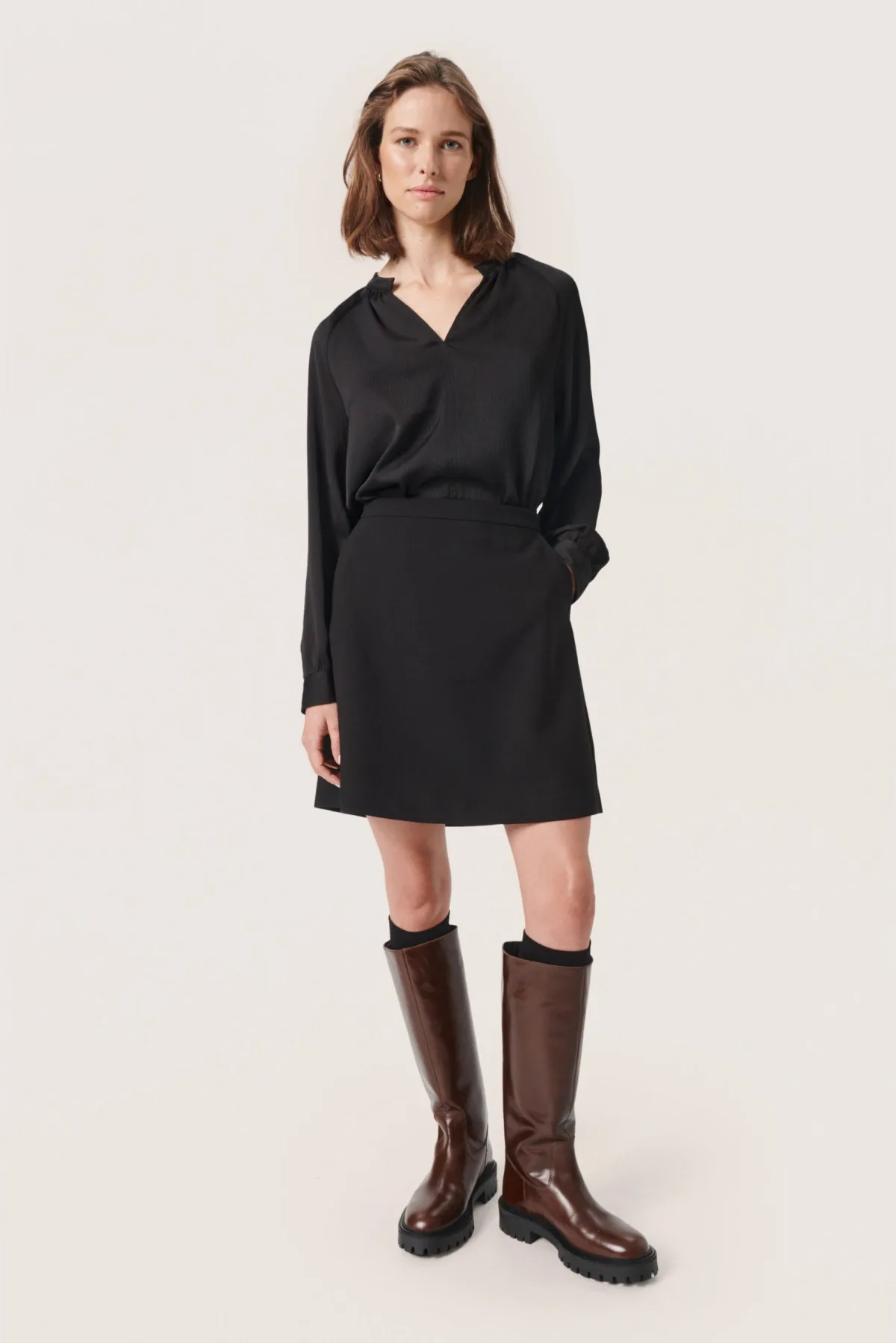 Blouse met lange mouwen Regular fit Black