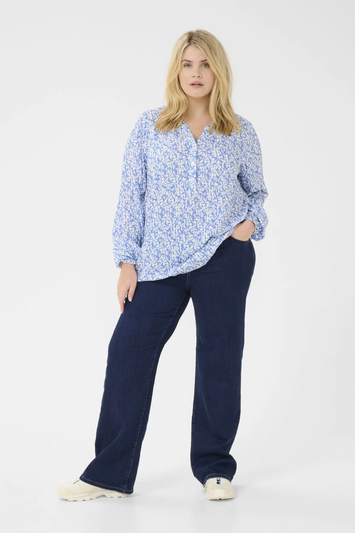 Blouse met lange mouwen Regular fit Blue/Chalk Graphic Print blue white
