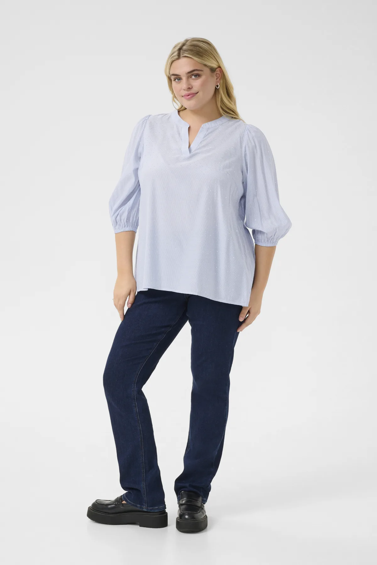 Specificaties: Blouse met lange mouwen Regular fit Blue/White Stripe blue white