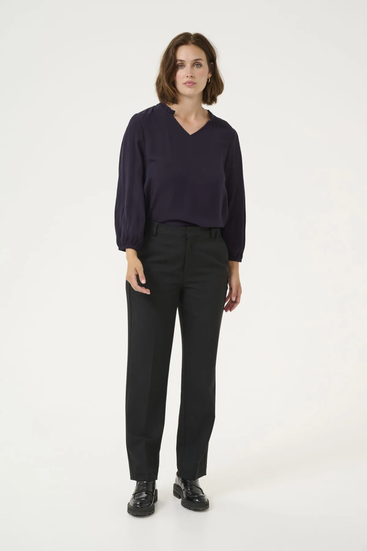 Ontdek de damesblouse KAFFE Kamilla, een echte must-have voor elke vrouw die op zoek is naar een elegante en vrouwelijke outfit. Met het gerenommeerde merk KAFFE, is deze blouse speciaal ontworpen om de silhouette van de moderne vrouw te accentueren.Gemaakt van hoogwaardige stof, biedt de damesblouse KAFFE Kamilla een flatterende en comfortabele pasvorm die bij elke lichaamsvorm past. Het strakke ontwerp en de verfijnde details maken het een veelzijdig kledingstuk, perfect voor elke gelegenheid, van kantoor tot weekend en een avondje uit met vrienden.Met zijn tijdloze kleur en klassieke stijl is de blouse KAFFE Kamilla een echte basis in je garderobe die gemakkelijk te combineren is met andere items voor verschillende looks. Combineer het met een pantalon voor een chique look op kantoor, met een jeans voor een casual uitstraling of met een rok voor een vrouwelijke en elegante stijl.De damesblouse KAFFE Kamilla valt ook op door zijn delicate details zoals de parelknoopjes en de pl...