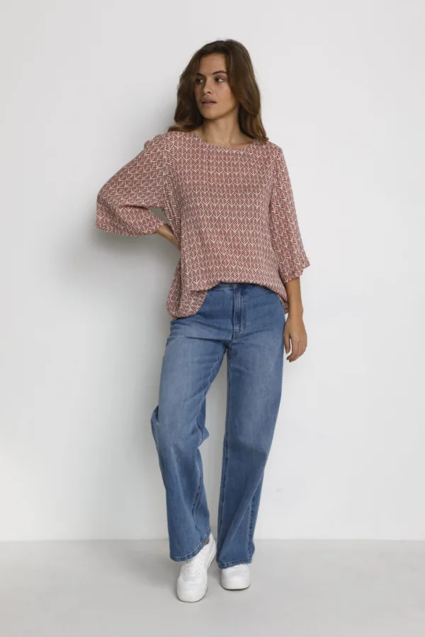 Blouse met lange mouwen Regular fit Dusty red / chalk leaf Prijzen
