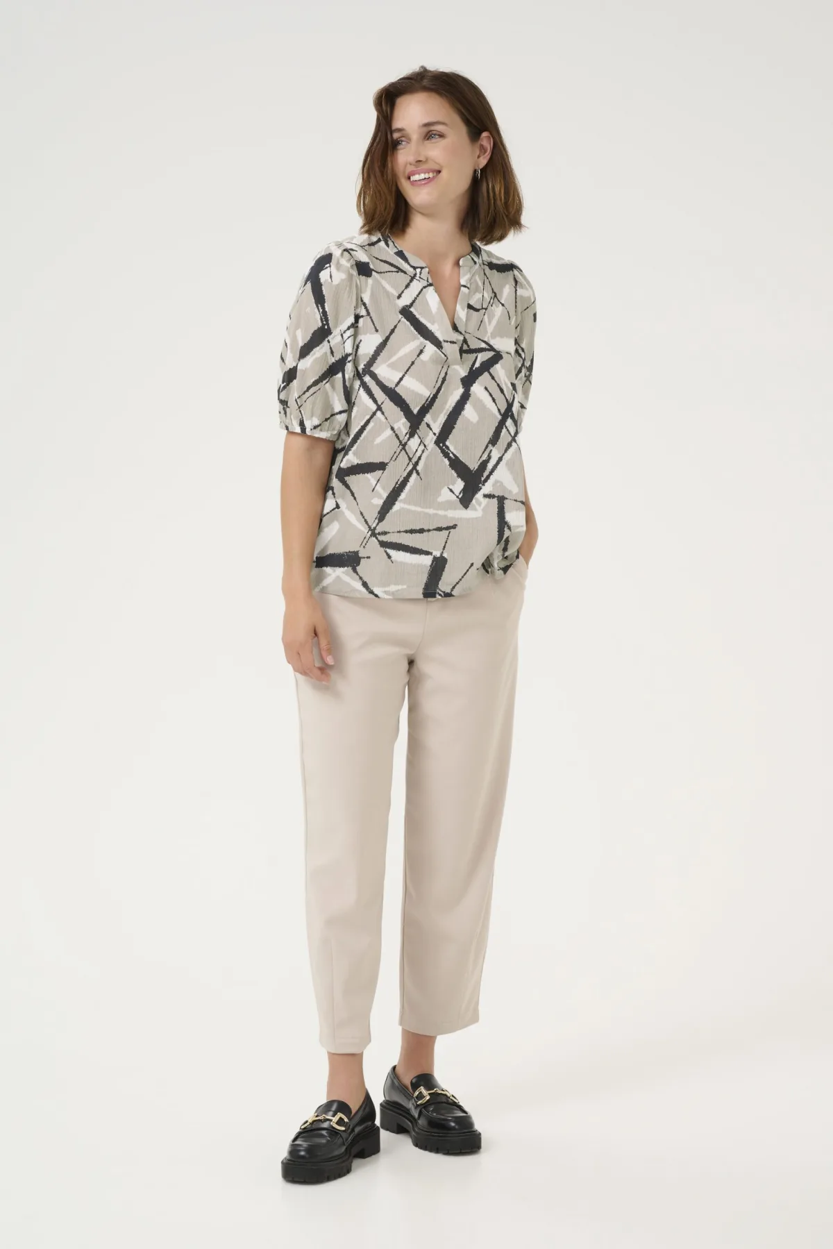 Blouse met lange mouwen Regular fit Feather Gray/Black Graphic blue...