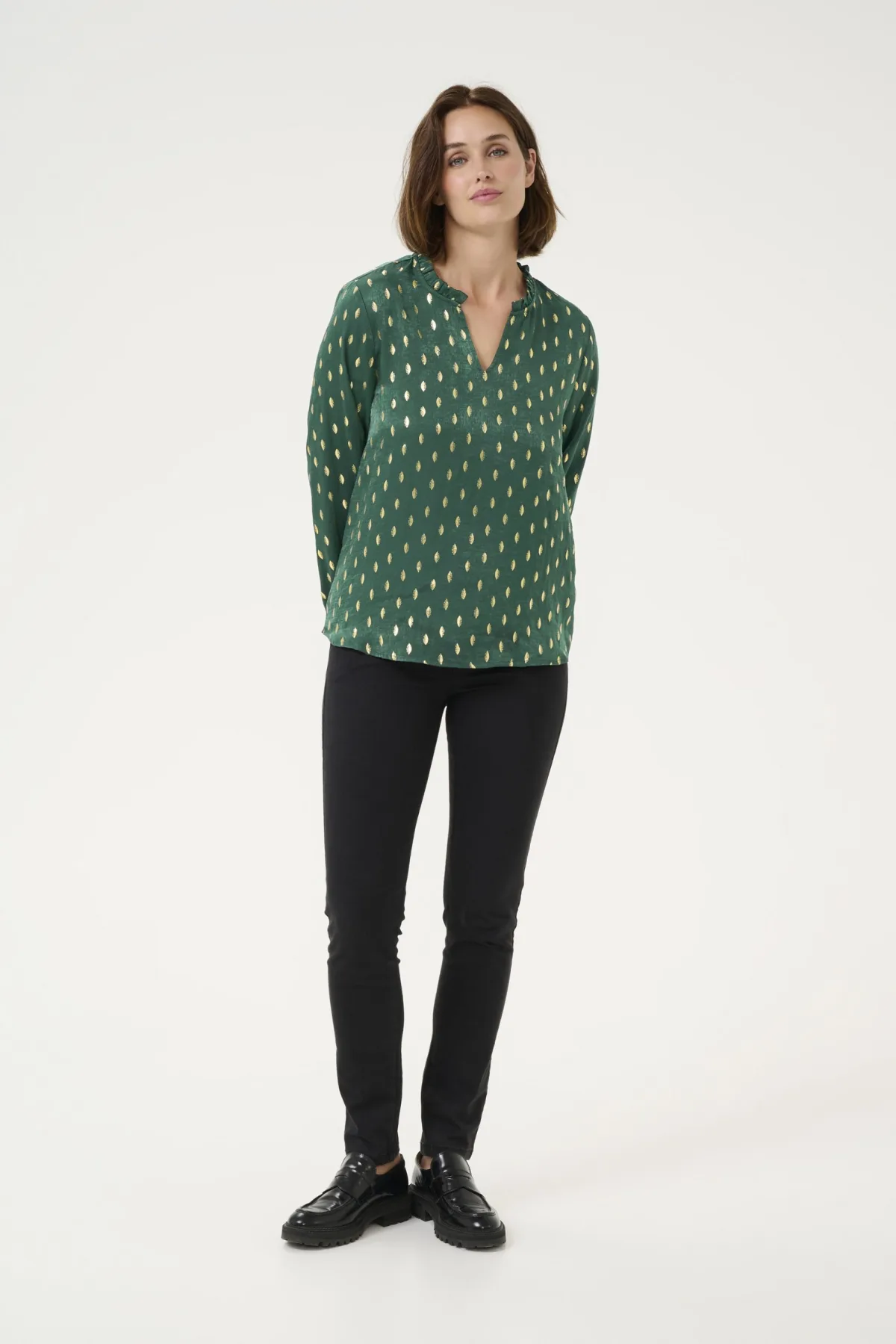 Blouse met lange mouwen Regular fit Green With Foil Print...