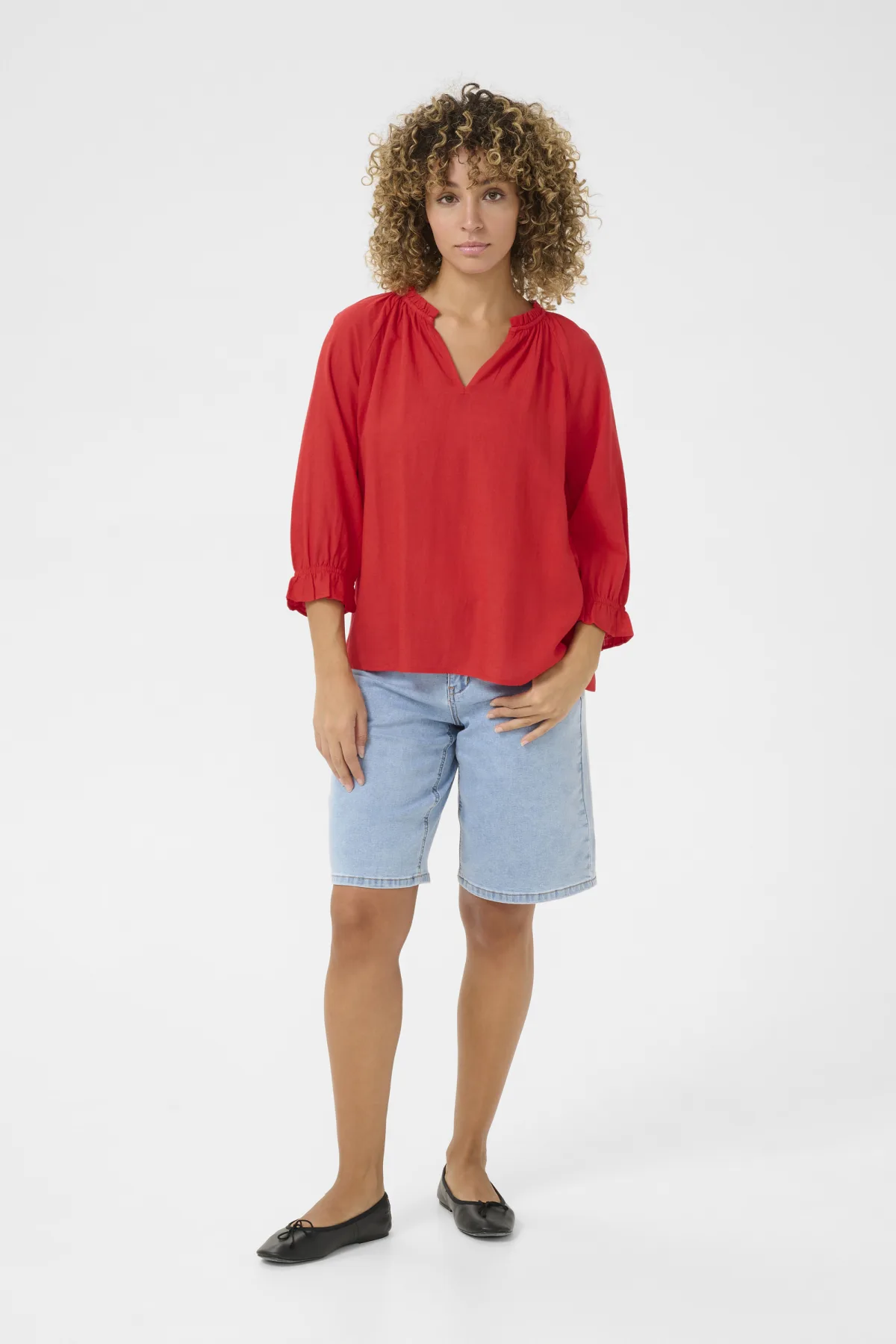 Regular fit,Heup lengte,3/4 mouwen Fijne was 30°, niet bleken, niet in de droger drogen, Druipnat ophangen in de schaduw, koud strijken max. 110° C, 70% Viscose,30% Linnen
