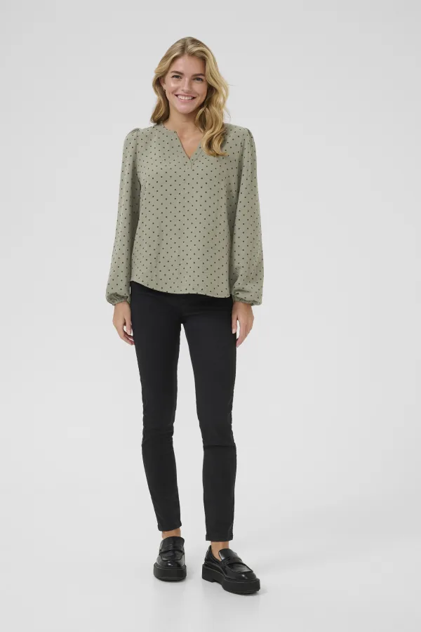 Blouse met lange mouwen Regular fit Vetiver w. Deep Black Dot green Prijzen
