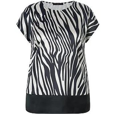 EMILIA LAY blouse met loshangende schouders. Dit model geeft zowel elegante als sportieve outfits een extravagante look. Gemaakt van 100% polyester satijn met een zebraprint en een brede effen zoom. Elke blouse is uniek. Lengte in maat 42 ca. 68 cm. Deze blouse is machinewasbaar. fijnwas tot 30°. chloorbleken niet mogelijk. koud strijken. chemische reiniging, veilig. drogen in de droger niet mogelijk. 40, 42, 44, 46, 48, 50, 52, 54, 56