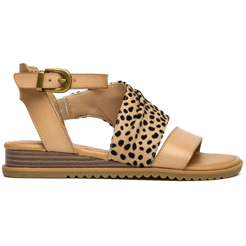 Bruine Blowfish Balana sandalen voor dames, gemaakt van synthetisch materiaal en een rubberen zool. Voorzien van: Blowfish-merk, luipaardprint, verstelbare gesp en veganistisch.