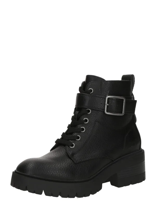 Design: Profielzolen, Hielband, Gesp; Type sluiting: Snoersluiting; Type hak: Blokhak; Motief: Effen; Plateau: Met plateau; Materiaal: Imitatieleer; Schoenneus: Ronde neus; Extra's: Anti-slip zool, Metalen oogjes; Hakhoogte: Middelhoge hak (3-7 cm)