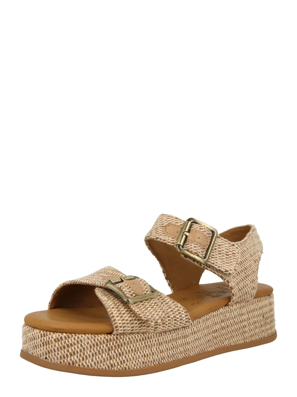 Design: Verstelbare riemen, Hak/zool met raffia-look; Type sluiting: Gesp; Plateau: Met plateau; Materiaal: Textiel; Schoenneus: Open toe; Extra's: Gestructureerd oppervlak, Flexibele zool; Hakhoogte: Middelhoge hak (3-7 cm)