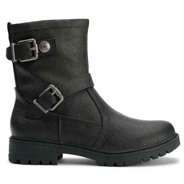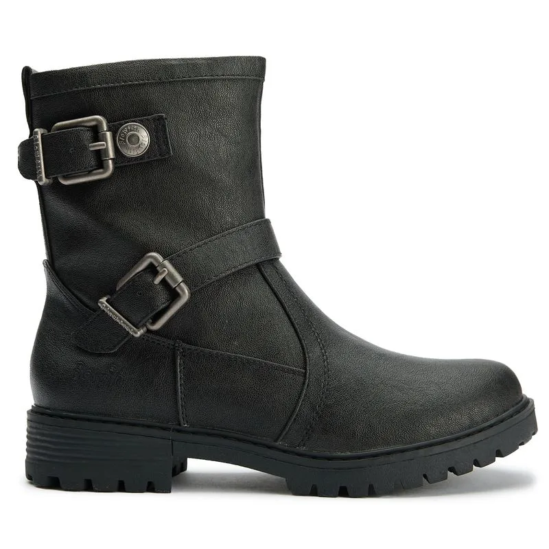 Dames zwarte Blowfish Raydon laarzen, vervaardigd met synthetisch materiaal en een rubberen zool. Kenmerken: binnenrits, buitenste gespen, fleece voering, Blowfish branding en 100% vegan.