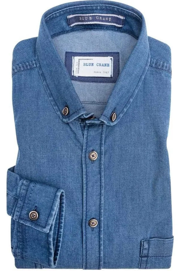 - Bij Overhemden.com kun je Blue Crane Denim shirt blauw, Effen kopen voor slechts €89,95