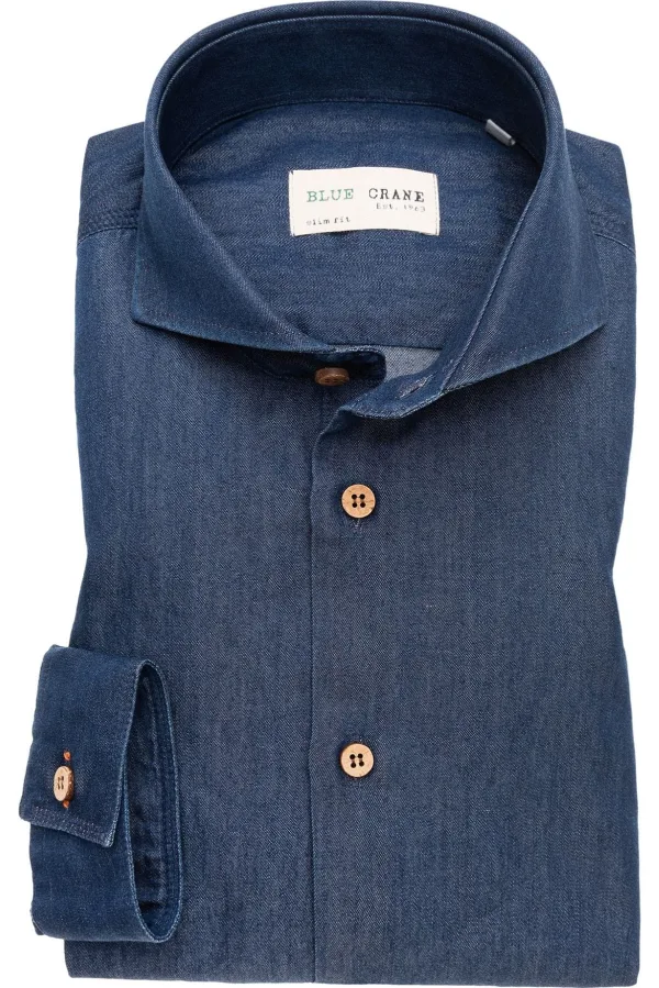 - Bij Overhemden.com kun je Blue Crane Denim shirt donkerblauw, Effen kopen voor slechts €89,95