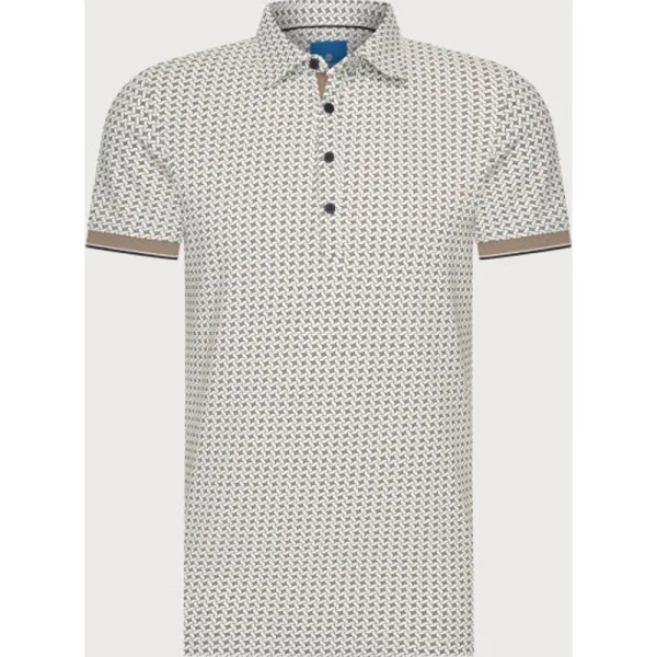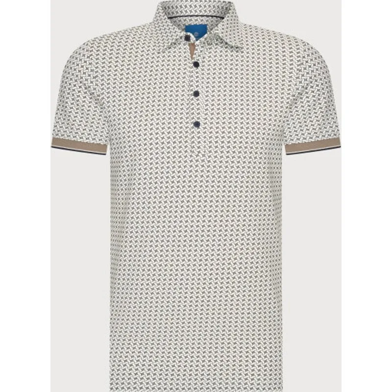 Deze polo is uitgevoerd met een all-over geometrisch dessin en gemaakt van een katoenen stof met elastan. Het model heeft een regular fit en is voorzien van een knoopsluiting aan de hals. De toevoeging van elastan zorgt voor lichte rek in het materiaal. 95% katoen / 5% elastan All-over geometrisch dessin Knoopsluiting Polokraag Regular fit