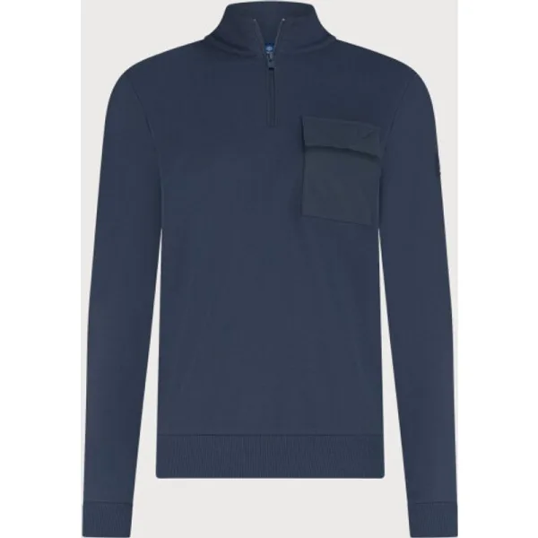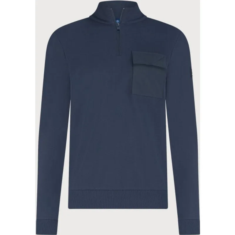 Deze Blue Industry sweater is uitgevoerd in een regular fit en gemaakt van een luxe katoenmix met polyester. De halve ritssluiting met logodetail geeft de sweater een moderne uitstraling. Voorzien van een borstzak in contrasterende stof met drukknopen en afgewerkt met een 3D logo badge op de mouw. Het materiaal voelt zacht aan en biedt hoog draagcomfort. Regular fit Luxe katoenmix Halve ritssluiting met logodetail Borstzak in contrasterende stof