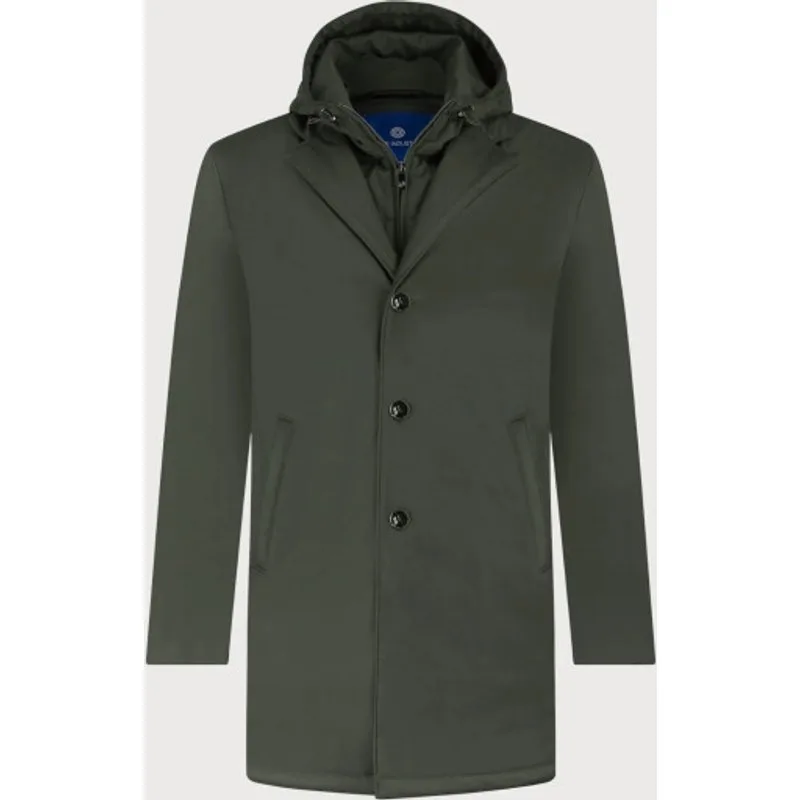 Deze Blue Industry mantel is uitgevoerd in een regular fit en gemaakt van 100% polyester. De jas is water- en winddicht en voorzien van een uitneembare binnenjas met luxe ritssluiting. Afgewerkt met een klassieke knoopsluiting, twee zijzakken, een capuchon en praktische binnenzakken met knoopsluiting. Regular fit Water- en winddicht Uitneembare binnenjas met ritssluiting Capuchon en meerdere zakken