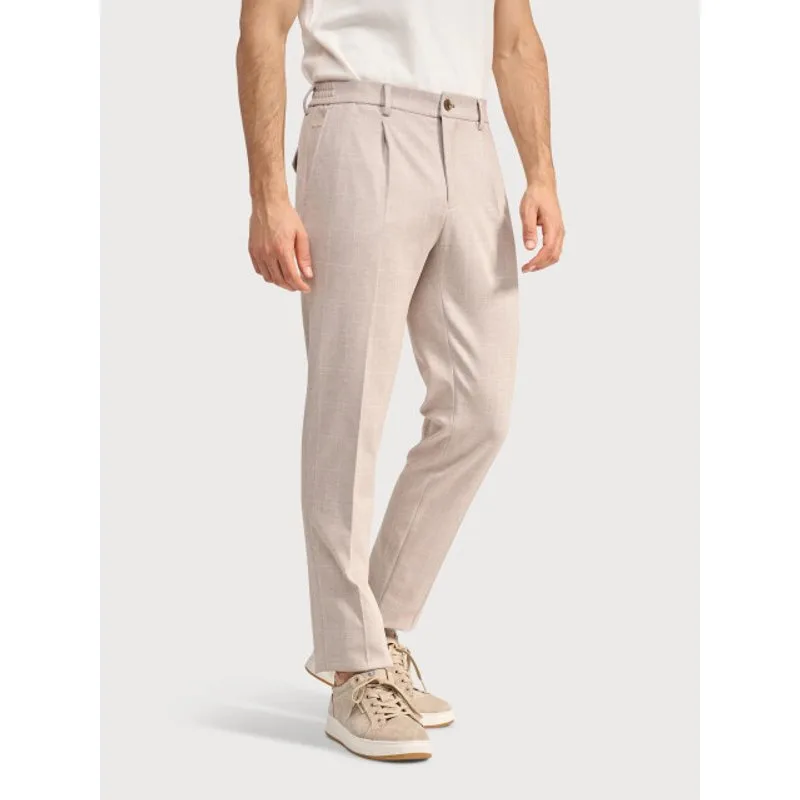 Deze chino is een broek uitgevoerd in een jersey stoffen mix en heeft een regular fit. Het model is gemaakt van polyester, viscose en elastaan. De stof is voorzien van een subtiele ruitprint en heeft een jersey constructie. De chino is afgewerkt met een bandplooi en maakt deel uit van een mix en match artikelgroep. 88% polyester / 9% viscose / 3% elastaan Jersey stoffen mix Subtiele ruitprint Bandplooi Regular fit Mix en match artikel