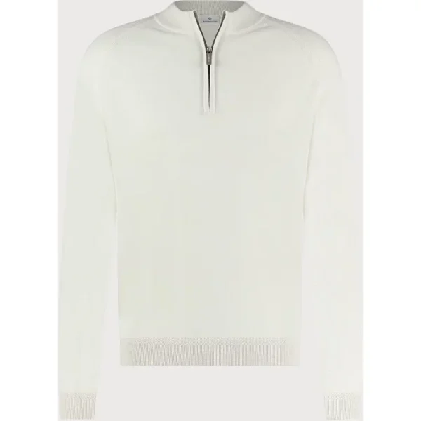 De Half-Zip Pullover is een essentieel kledingstuk voor de moderne man die waarde hecht aan comfort, stijl en kwaliteit. Vervaardigd uit 100% katoen, biedt deze pullover een ongeëvenaard draagcomfort en duurzaamheid. De moderne pasvorm sluit naadloos aan op het lichaam, terwijl de fijne structuur van het breisel in combinatie met het tonale melange contrast een subtiele, maar stijlvolle uitstraling geeft. De luxe half-zip sluiting, verfraaid met een logo zipperpuller, voegt een verfijnde touch toe, terwijl de raglan mouwen zorgen voor optimale bewegingsvrijheid. Dit kledingstuk is een veelzijdige toevoeging aan elke garderobe. - Modern fit voor een gestroomlijnde look - 100% katoen voor optimaal comfort en duurzaamheid - Luxe details zoals logo zipperpuller en raglan mouwen voor een verfijnde uitstraling