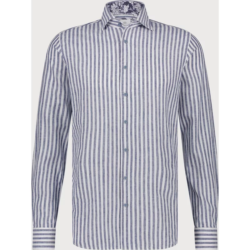 Blijf altijd voorop lopen met het Gestreepte Katoenen Overhemd – een licht en ademend overhemd met een klassieke verticale streep en verfijnde contrastdetails in de kraag. Gemaakt van 100% katoen voor ultiem draagcomfort, ideaal voor zowel werk als weekenden. Gemaakt van 100% katoen voor een zachte en ademende feel Verticale strepen voor een tijdloze en elegante uitstraling Cutaway kraag met subtiele contrastvoering voor een verfijnde touch Luxe knopen met subtiele merkgravering Manchetten met een stijlvolle streepafwerking