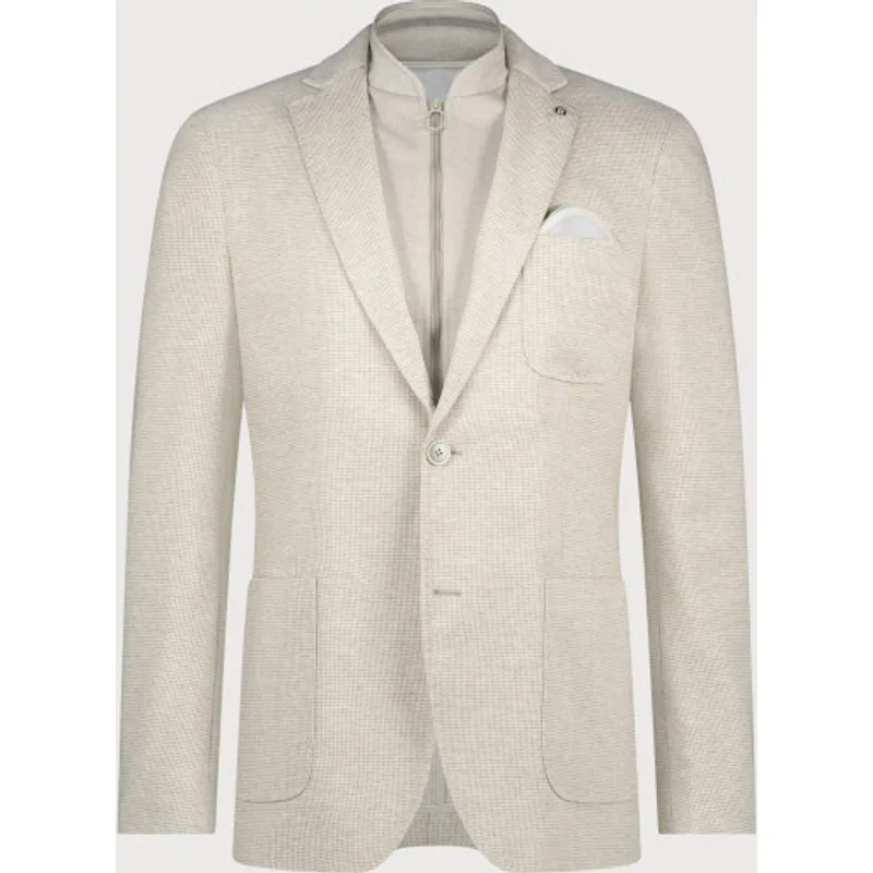 Blijf altijd voorop lopen met het jersey colbert met ingewerkte rits. De combinatie van een verfijnde buitenstof en een sportieve jersey voering met ritssluiting zorgt voor een moderne, comfortabele look. De pasvorm is slank en sluit mooi aan, terwijl de stretch in de stof zorgt voor ultieme bewegingsvrijheid. Een colbert dat zich moeiteloos aanpast aan elke gelegenheid. Draag het op een chino of jeans voor een stijlvolle outfit met een relaxte twist. Subtiel microdessin in een luxe jersey uitvoering Ingewerkte voering met rits Comfortabele stretch en ademend draagcomfort Verfijnde details zoals opgestikte zakken en pochet Perfect te combineren voor zowel werk als weekend