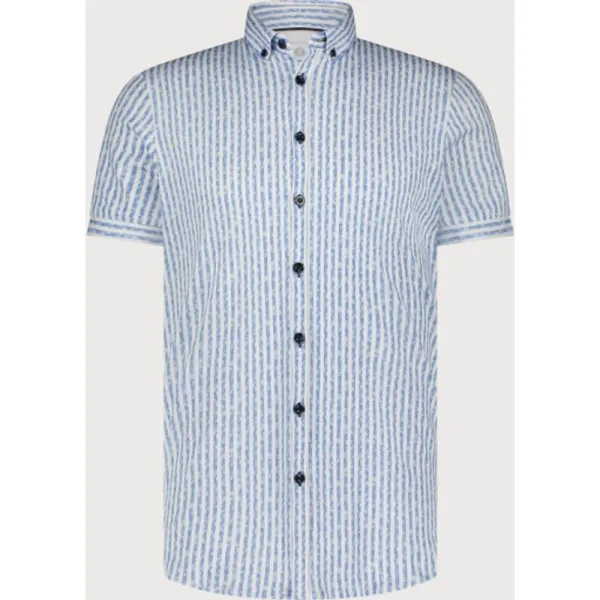Geniet van comfort en stijl met dit overhemd met korte mouw – een zomers overhemd gemaakt van ademend katoen met een klassiek streeppatroon. Ideaal voor warme dagen en perfect te combineren met zowel casual als smart-casual outfits. Gemaakt van hoogwaardig, ademend katoen voor optimaal draagcomfort Tijdloos streeppatroon met een frisse en zomerse uitstraling Button-down kraag voor een verzorgde en veelzijdige look Luxe contrastknopen voor een stijlvolle afwerking Ideaal voor zowel een ontspannen dag als een zomerse smart-casual outfit