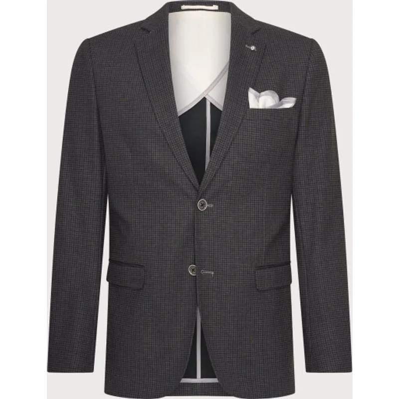 Dit colbert met micro-ruit dessin biedt een verfijnde uitstraling met een subtiel patroon dat elke outfit net dat beetje extra geeft. De lichte en ademende stof zorgt voor optimaal draagcomfort, terwijl de moderne pasvorm geschikt is voor zowel zakelijke als casual gelegenheden. Perfect te combineren met een chino of jeans voor een veelzijdige look. Subtiel micro-ruitmotief Ademende stof voor extra comfort Regular fit pasvorm Plekzakken