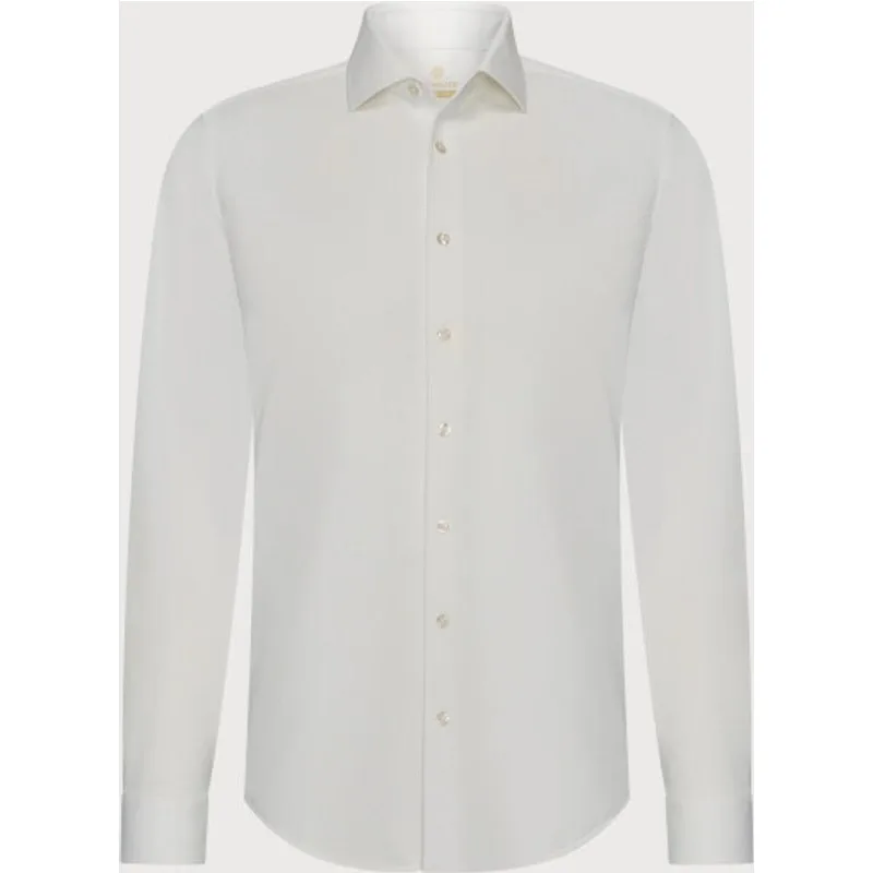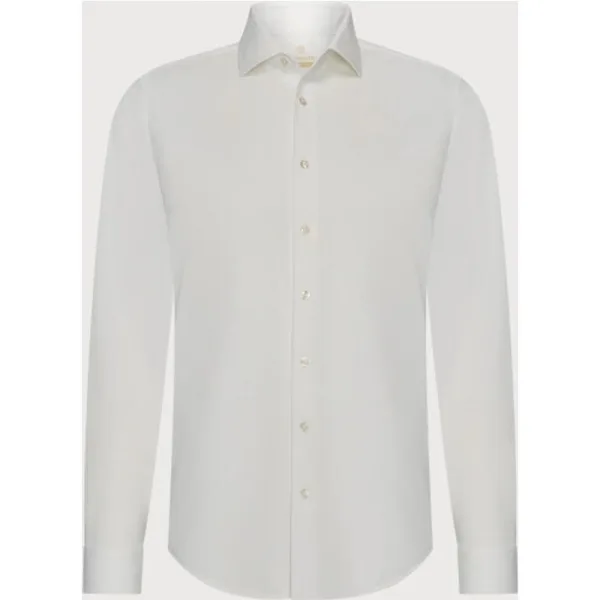 Dit uni overhemd is uitgevoerd in een soepele stof met stretch en draagt comfortabel zonder zijn vorm te verliezen. Het materiaal voelt licht aan en beweegt mee, waardoor het overhemd geschikt is om de hele dag door te dragen. De gladde afwerking zorgt voor een verzorgde uitstraling en maakt het item makkelijk te combineren met andere lagen. uni uitvoering stretch stof katoenmix met elastaan gladde structuur knoopsluiting regular fit Combineer dit overhemd met een chino of draag het onder een fijngebreide trui.
