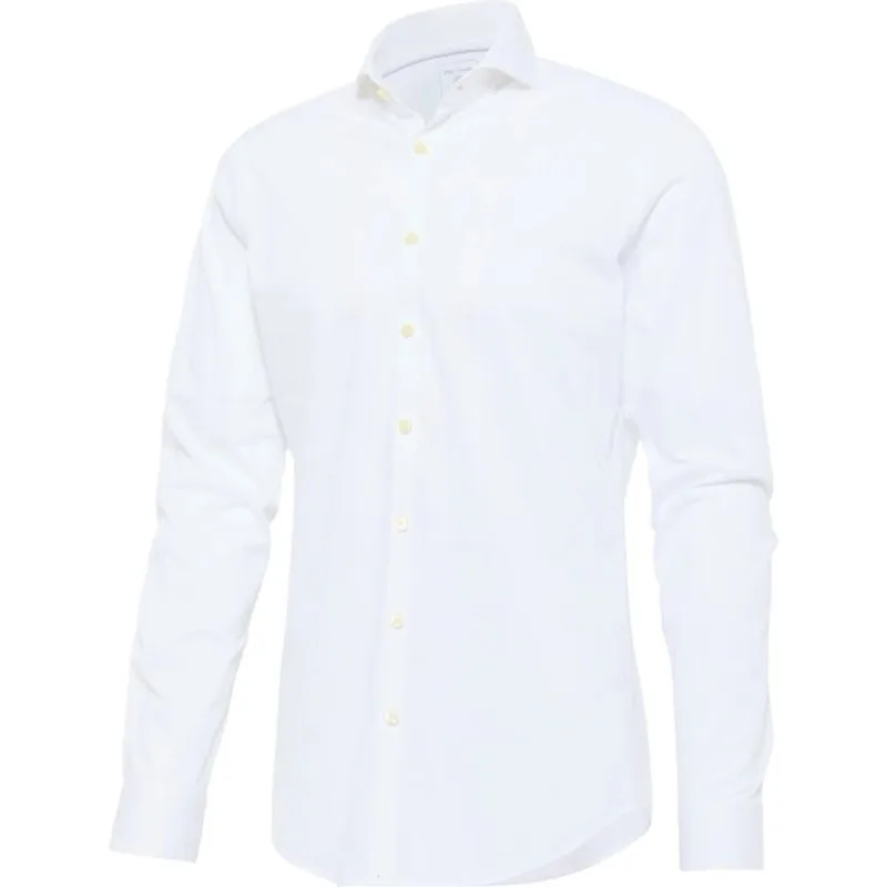 Een overhemd van geweven kwaliteit met een kent boord, een gladde knoopsluiting, lange mouwen met een manchet met sluiting en afgerond aan de onderkant. Het overhemd is gemaakt van sneldrogend, functioneel coolmax een weefsel van zachte, comfortabele en unieke polyestervezels die effectief vocht afvoeren en de temperatuur reguleren.