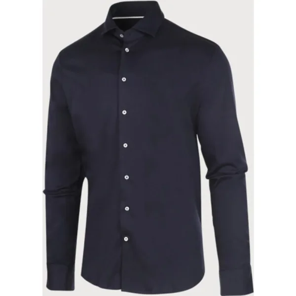 Dit basis shirt is teruggebracht naar een strakke, minimalistische look en is veelzijdig genoeg om zowel casual als net te dragen. Dankzij een comfortabele slim fit pasvorm, smalle kraag, is het zowel modern als tijdloos. Single jersey vond haar oorsprong in de wereld van het T-shirt. Deze shirts hebben onze traditionele perfecte pasvorm en met de wide spread kraag is dit het perfecte all-round shirt.
