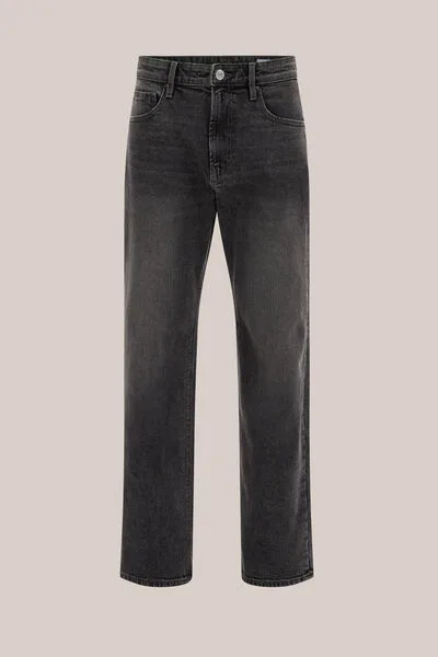 Als je eenmaal merkt hoe goed een lossere fit staat, wil je nooit meer terug. Deze jeans heeft een relaxed fit, rechte pijpen, vijf zakken, een rits- met knoopsluiting en een used black wassing, en krijgt door de medium stretch een moderne look die soepel meebeweegt.