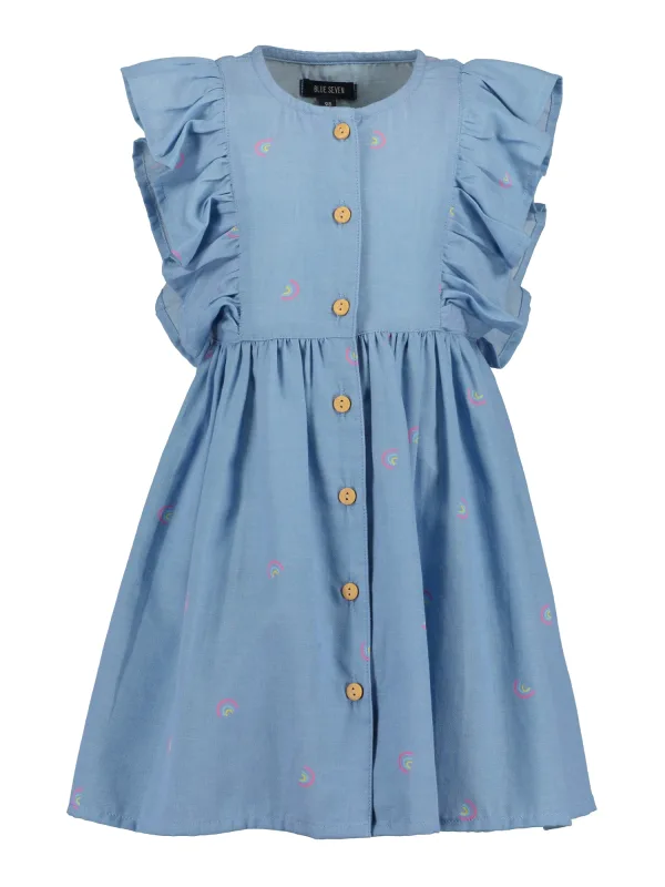 Specificaties: BLUE SEVEN Jurk duifblauw / geel / lila / pink