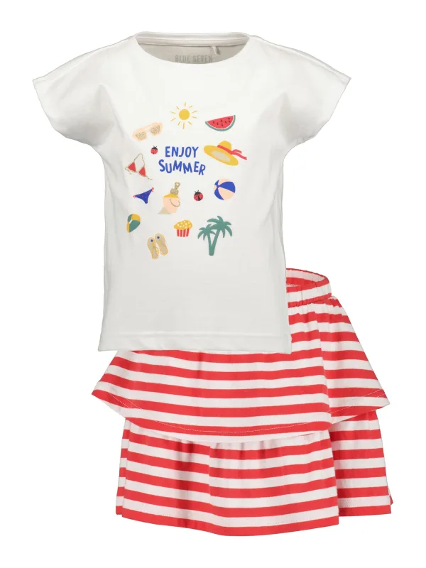 BLUE SEVEN Set blauw / curry / rosa / wit