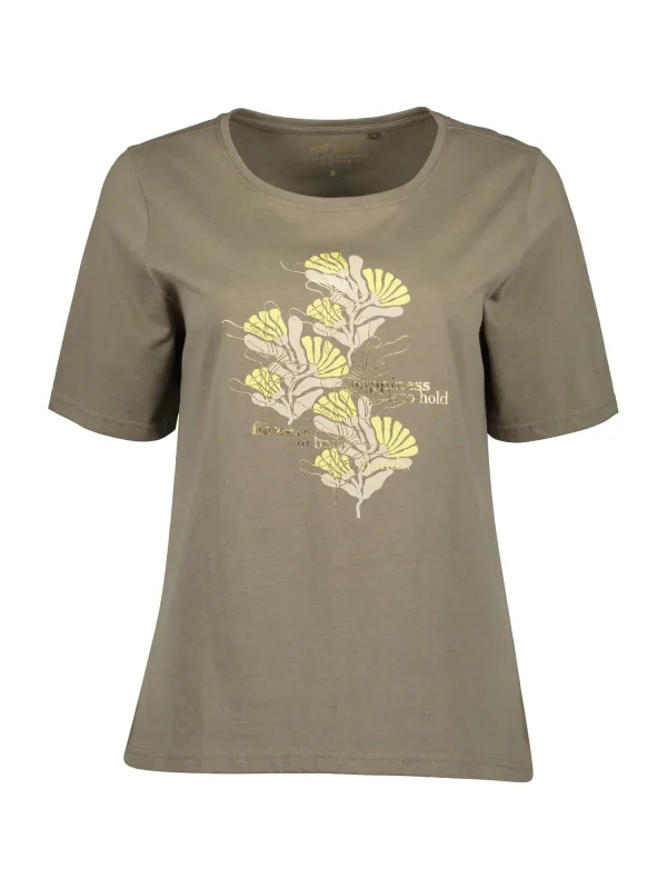 Design: Gevoerde zoom/rand, Rechte zoom, Nektape; Materiaal: Jersey; Halstype: Ronde hals; Motief: Motiefprint; Extra's: Op staal naden, Voelt zacht aan, Metallic look; Pasvorm: Normale pasvorm; Armlengte: Kwartmouw; Lengte: Normale lengte