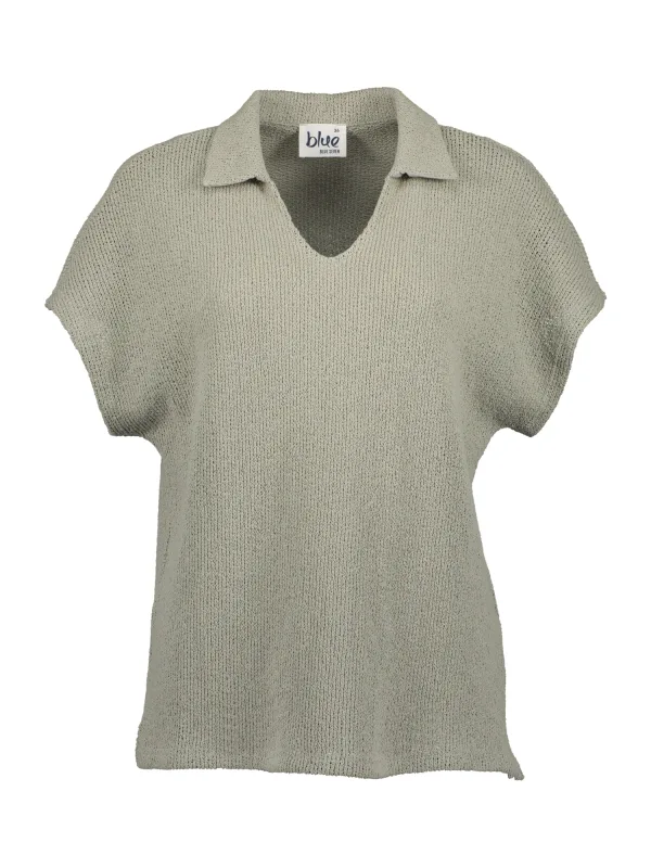 Design: Geribbelde kraag, Rechte zoom; Materiaal: Knitwear; Halstype: Polokraag; Motief: Effen; Extra's: Met textuur, Voelt zacht aan; Pasvorm: Normale pasvorm; Armlengte: Kwartmouw; Lengte: Normale lengte