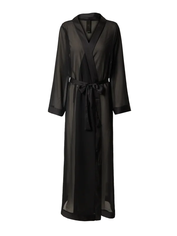 Design: Gevoerde zoom/rand, Rechte zoom, Kimono kraag, Tailleriem, Zonder sluiting; Motief: Effen; Extra's: Sterk transparant, Op staal naden, Gladde stof, Riemlussen