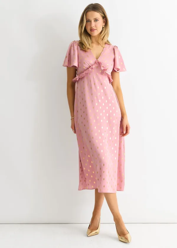 Blush Metallic Folie V Hals Midi Dress
