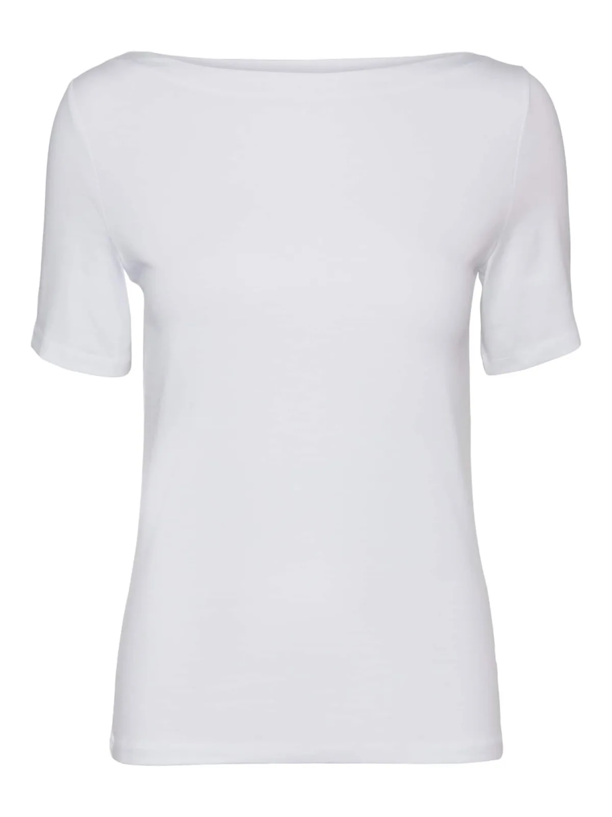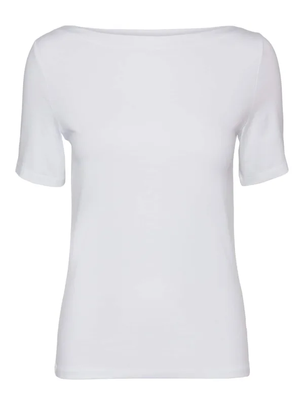 Boat Neck Short Sleeve TShirt Wo – White Tops Prijzen