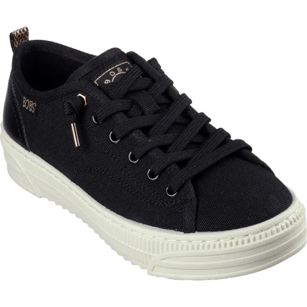 Ga voor de cabana lifestyle in casual platform comfort met BOBS van Skechers – BOBS Copa. Deze veelzijdige veganistische stijl heeft een bovenwerk van canvas en imitatieleer met een vetersluiting, een rubberen tussenzool en Skechers Memory Foam binnenzooldemping.
