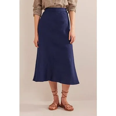 Boden Bias Linen Midi Skirt Navy Prijzen