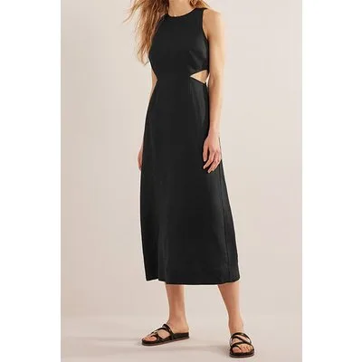Boden Cut Out Linen Midi Dress Black