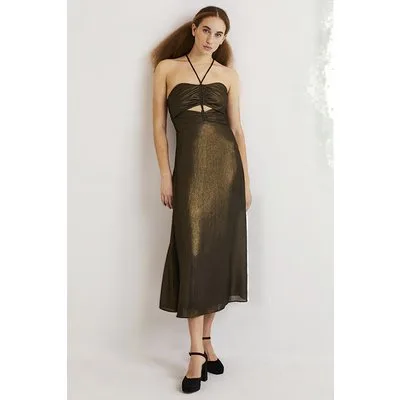 Boden Metallic Halterneck Midi Dress Gld