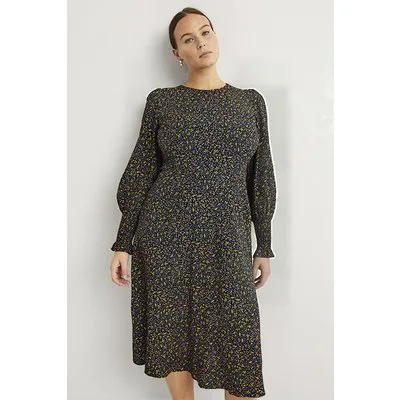 Boden Smocked Cuff Midi Dress Blk Prijzen