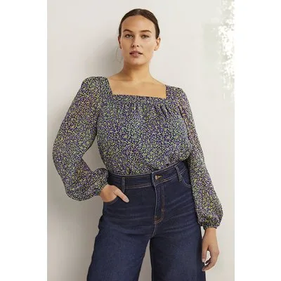 Boden Square Neck Printed Top Grn Prijzen