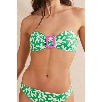 Boden Taormina Bandeau Bikini Top Green, Abstract Foliage