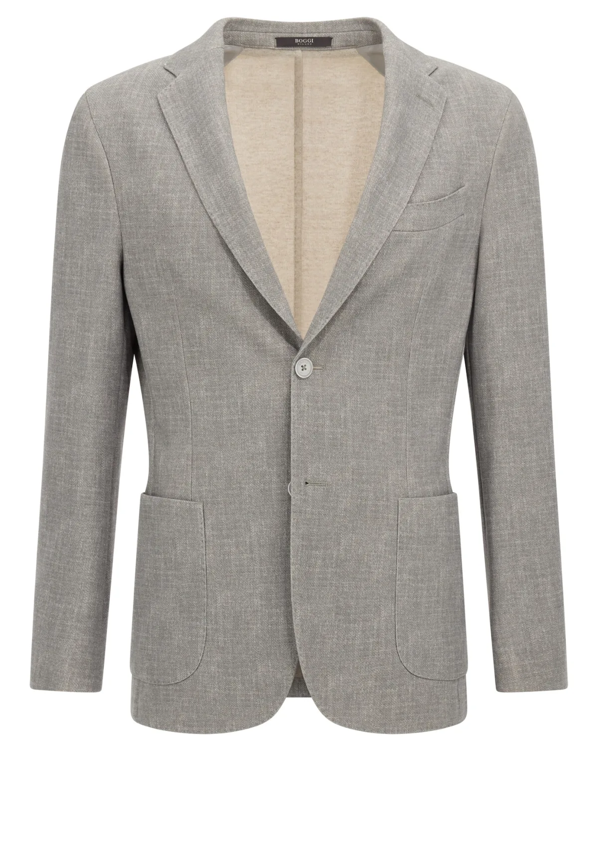 Design: Revers kraag; Type sluiting: Knoopsluiting; Voering: Gedeeltelijk gevoerd; Materiaal: Jersey; Motief: Mélange; Extra's: Op staal naden; Pasvorm: Slim fit