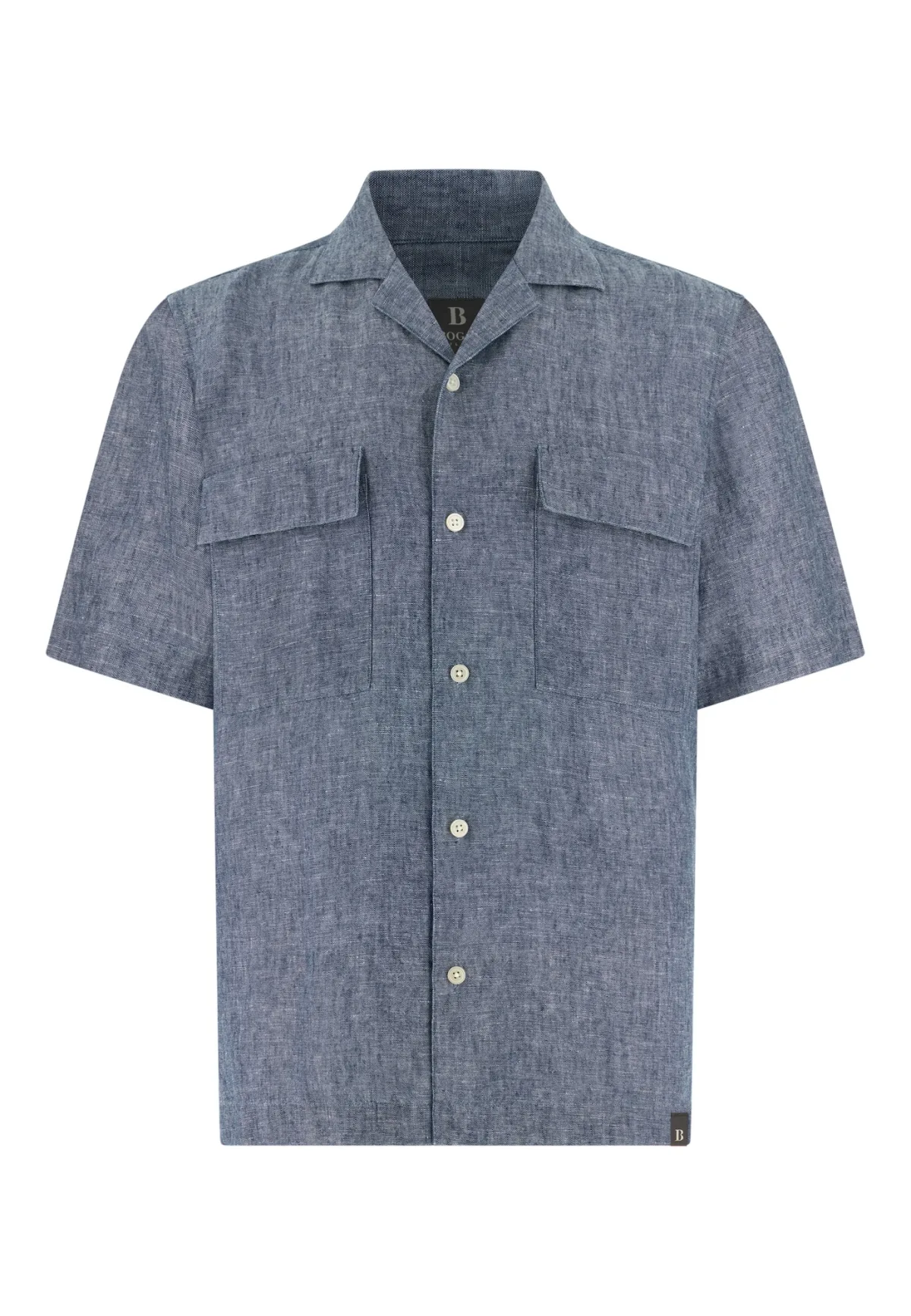 Design: Knop placket, Opzet-/flapzak; Type sluiting: Knoopsluiting; Materiaal: Denim; Motief: Mélange; Extra's: Label patch/label flag, Gewassen effect; Pasvorm: Regular fit; Armlengte: Halve mouw