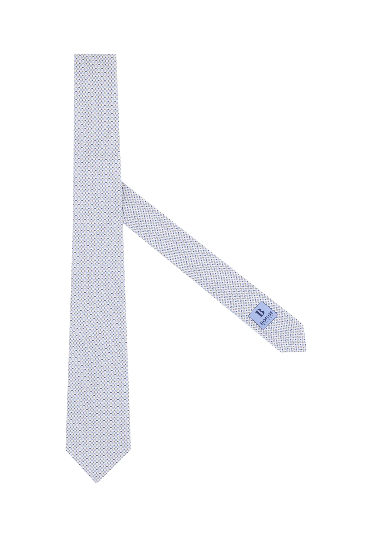 Specificaties: Boggi Milano Stropdas indigo / duifblauw / taupe / wit
