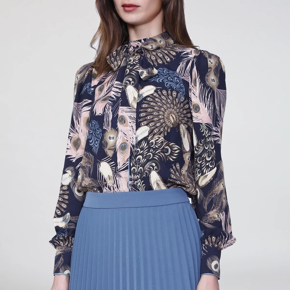 Met een afdruk met pauwenveren voegt dit shirt verfijning en originaliteit toe aan je garderobe. Blauwe vooroordelen op de manchetten en de placket brengen een verfijnde aanraking, terwijl de rechte snede het nodige comfort biedt voor een dag op kantoor. In een glad en onwrikbaar flanel gesneden, biedt dit artikel een zeer zachte en ademende sensatie. Ook om te dragen met een kokerrok, een trapezerok of een slanke broek. Vorm: recht Lengte: 70 cm Lange mouwen, polsknoppen Lavallière shirt kraag Geknoopt midden voor