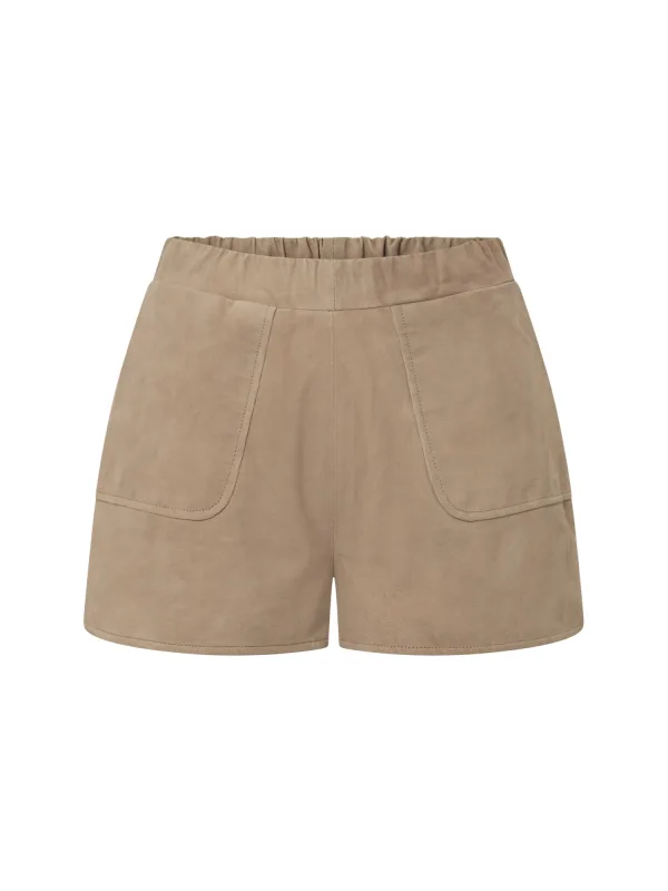 Design: Elastische taille/zoom, Zijdelingse inkepingen, Opgezette zakken, Achterzak; Materiaal: Leer; Motief: Effen; Details: Used-look; Extra's: Op staal naden, Buigzame grip, Nubuck leer; Lengte: Kort/mini; Pasvorm: Loosefit; Taillehoogte: Mid waist