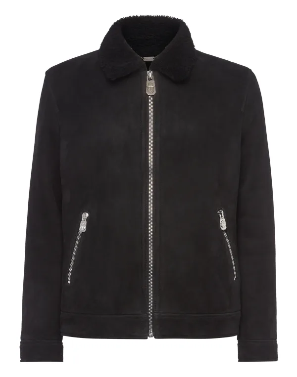 Ontdek de stijl van Billionaire met dit bomberjack in omgekeerd lam. Bekijk de kenmerkende details. Schapenvacht Lamswollen overhemdkraag Contrasterende gekleurde afwerking van imitatieleer Ritssluiting aan de voorkant, manchetten en zakken Metalen kruis op een ophanglus genaaid aan het juk Lamswollen voering